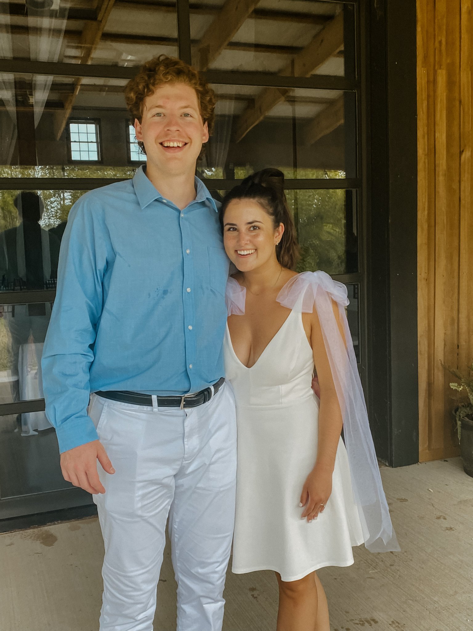 The night before the wedding, we had all of our out-of-state people come over for a low country boil. I may have loved this night more than our actual wedding - having everyone over made my heart SO happy. My family surprised us with a beautiful balloon arch, Pās mom gifted us a blue bird as a tribute to his grandfather who passed away and my mom decorated the cake with butterflies as a tribute to her mother who was watching from Heaven.